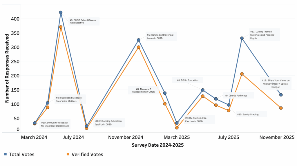 Survey #1: Community Feedback for Important CUSD Issues. From 04/19/2024 to 11/30/2024
